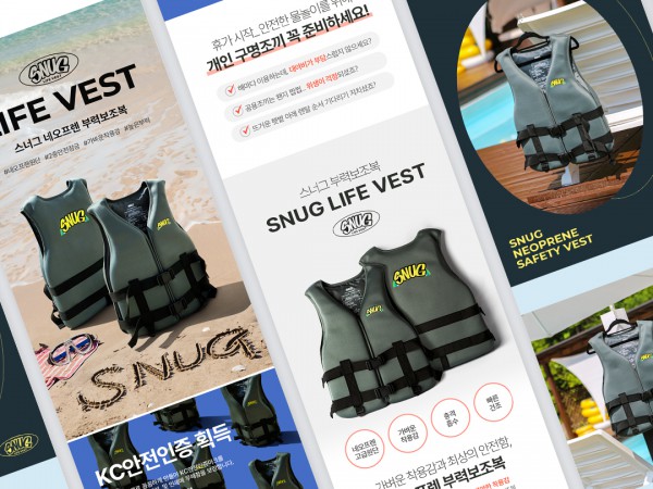 스너그 부력보조복 제품촬영 및 상세페이지 제작